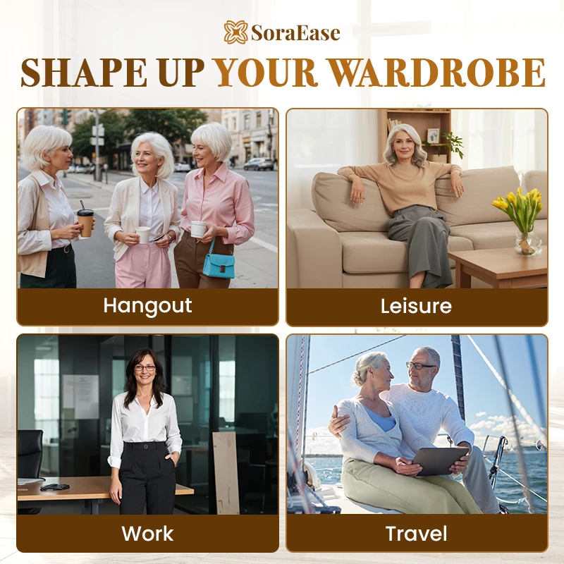 Rediscover everyday elegance with SoraEase, the perfect pants designed to flatter mature women with effortless comfort and timeless style.